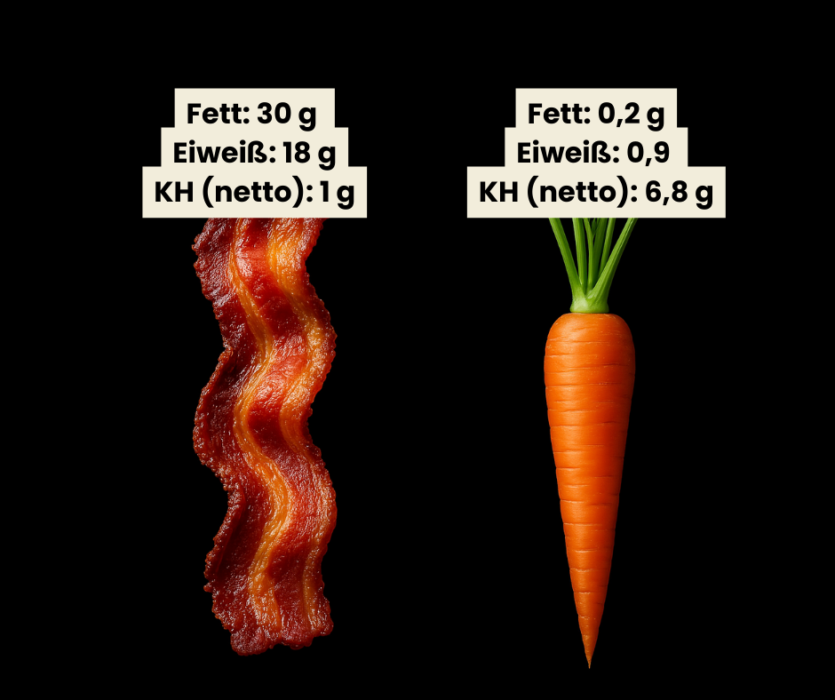 - Kohlenhydrate: ca. 5% (in der Regel zwischen 20-50 g pro Tag)