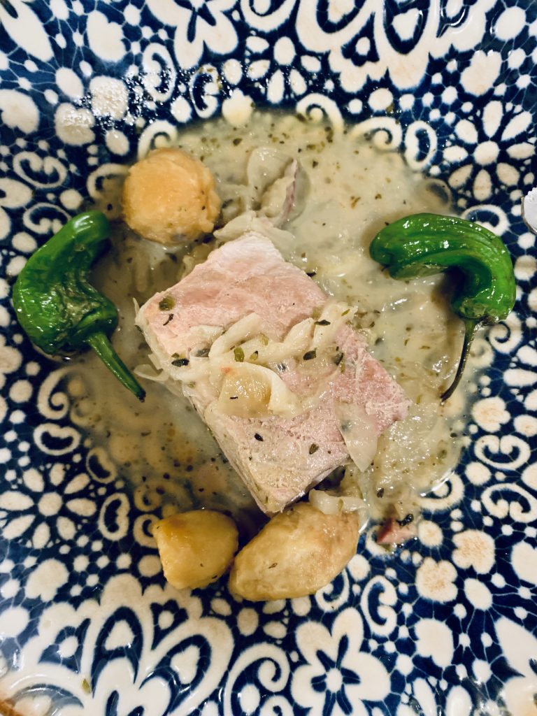 • Atún encebollado – Thunfisch, geschmort mit Zwiebeln in Olivenöl – je nach Region mit oder ohne Soße (vorher fragen)